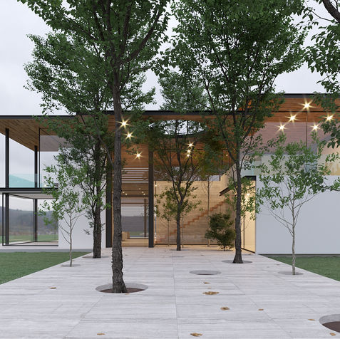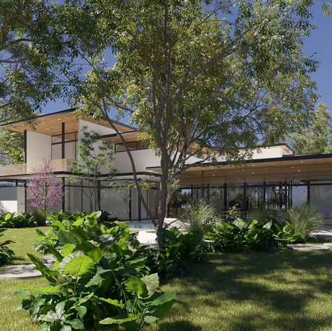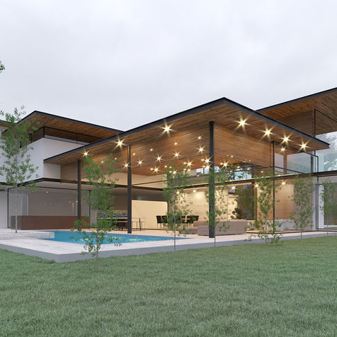 El proyecto se emplaza en un sector con un paisaje dinámico: El Ilalo como protagonista, sus quebradas como límites y bosques aledaños lo cual evoca la creación de una casa que tenga un juego de cubiertas voladas esbeltas y ligeras para que entrelace con el bosque. Este gran juego de distintas cubiertas a diferentes alturas que se solapan entre si son el remate de la casa dejando de lado la típica casa cubo, y que rescate la tipología de la casa. El resultado es una casa el cual la ligereza y el paso de la luz, el contacto con el agua y permeabilidad de la naturaleza circundante se convierte en el elemento más significativo del diseño. El partido arquitectónico está basado en la ligereza y transparencia de los espacios que integran su gran entorno natural, rematados con varios juegos de cubiertas livianas con voladizos las cuales desmenuzan los volúmenes. El proyecto se recorre gracias a un sinuoso promenade, que continua la relación entre el entorno natural y la vivienda. El entorno natural es el protagonista siendo parte del recorrido visual y sensorial del usuario. La volumetría debe obedecer a la tipología residencial, para esto, se fragmentan los volúmenes y se le dan distintas alturas y con siete distintos tipos de cubiertas muy lineales y ligeras que están en voladizo que rematan y acogen el hogar. El techo de una casa simboliza la casa. Las cubiertas por su parte están suspendidas sobre un cinturón acristalado, esto con el fin de proveer iluminación natural y ventilación a todos los espacios de la casa. El efecto arquitectónico que se genera son juegos volumétricos ligeros, flotantes. Está fragmentación simula el movimiento que tiene la topografía dinámica del entorno: montañas y quebradas. En planta baja la fachada frontal de la casa se compone, con un basamento de hormigón visto que a su vez brinda privacidad con respecto a la calle. Este basamento, se separa de la losa mediante una cinta perimetral acristalada que es la pauta de la ligereza del resto de la casa. La fachada lateral y posterior, se compone de volúmenes totalmente acristalados, sostenidos de elementos muy esbeltos verticales. Esta transparencia y permeabilidad permite la entrada del maravilloso entorno natural, en la que esta residencia se implanta. La gama de materiales se compone de hormigón visto madera cristal y metal.